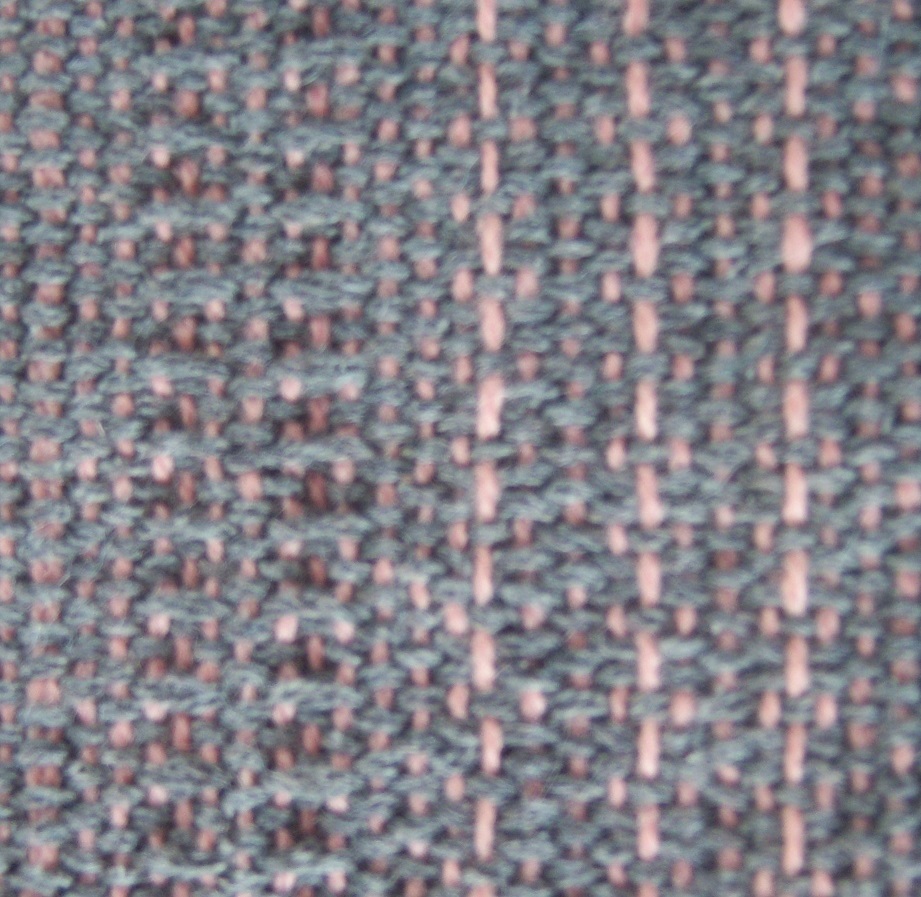 For balanced weave, the warp is closer together and the spacing is the same as the weft. The warp shows and contributes to the design. The colours of the warp and weft form the patterns in the blue and turquoise sample.